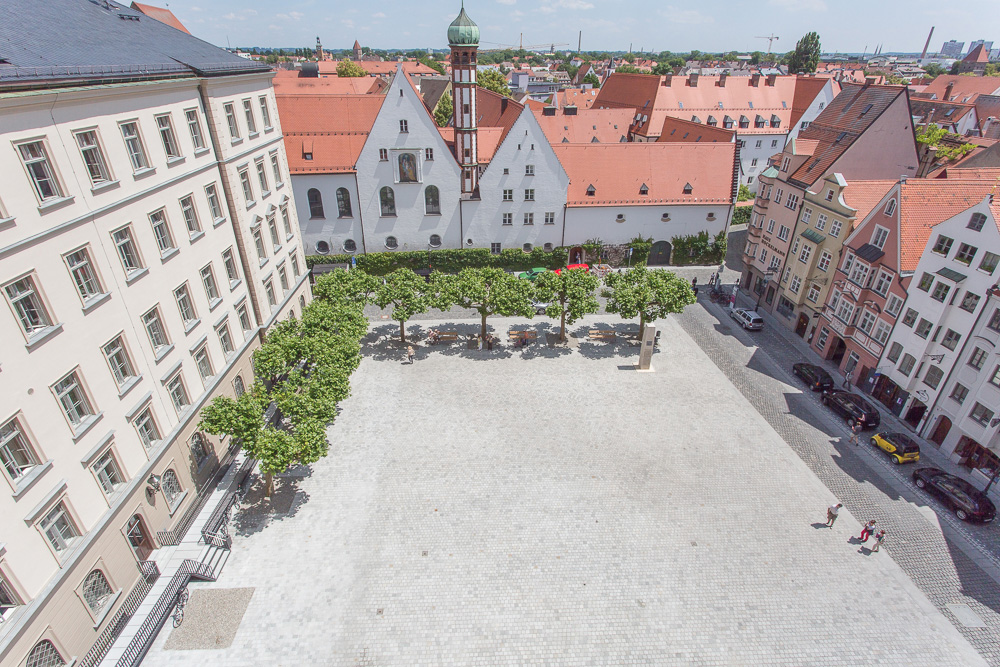 Ein zentraler Platz mit großer Geschichte und viel Potenzial. Mit mehr Grün, Schatten und Aufenthaltsqualität könnte der Elias-Holl-Platz vom steinernen Durchgangsort zu einem lebendigen Platz für Begegnung und Pause im Herzen der Stadt werden.